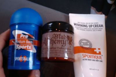 The weather for the day was in the 50’s and raining. i made sure to bring all of my embrocations, and ended up going with mad alchemy, and tons of it. That stuff is orange, and putting it on makes you look like you just got out of the fake’n’bake booth. that being said, its delightfully greasy and warm, and water beads right off of it. hoooray for spicy grease!